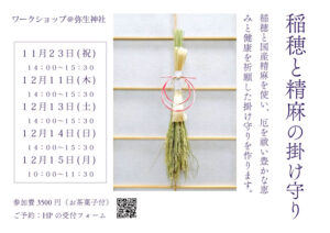稲穂と国産精麻を使い、厄を祓い豊かな恵みと健康を祈願した掛け守りを作ります。