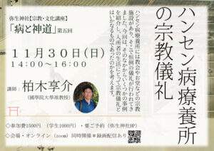 11月30日(日) 【宗教・文化講座】「病と神道」第五回 ハンセン病療養所の宗教儀礼