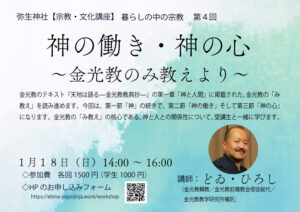 1月18日(日)【宗教・文化講座】「暮らしの中の宗教」第4回「神の働き・神の心」~金光教のみ教えより~