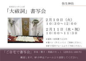 2月10・11日『大祓詞(おおはらえのことば)』書写会