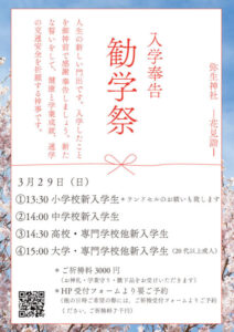①13:30 小学校新入学生*ランドセルのお祓いも致します