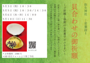 5月3・5・6・10日―若葉詣―「貝合わせの御祈願」~ご祈願と季節のお茶菓子おふるまい~