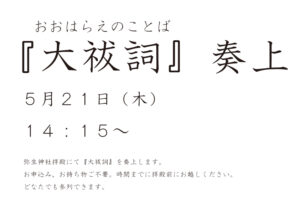 5月21日(木)『大祓詞(おおはらえのことば)』奏上