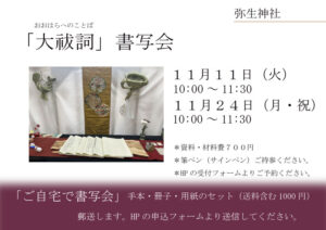 → 毎月開催『大祓詞(おおはらえのことば)』書写会